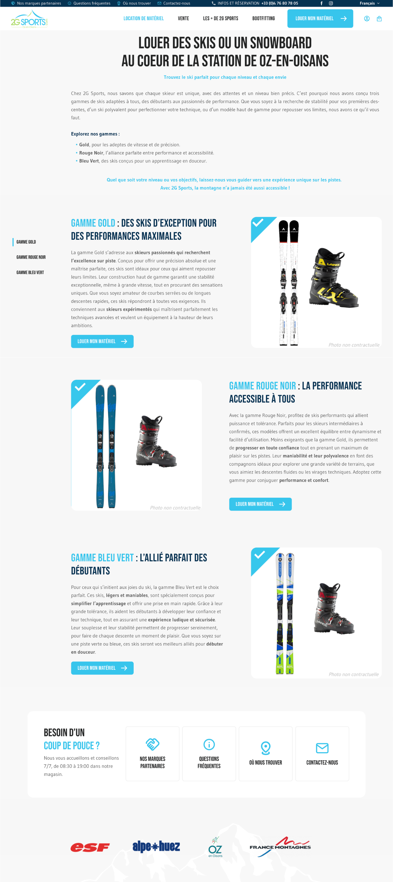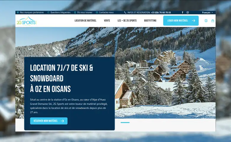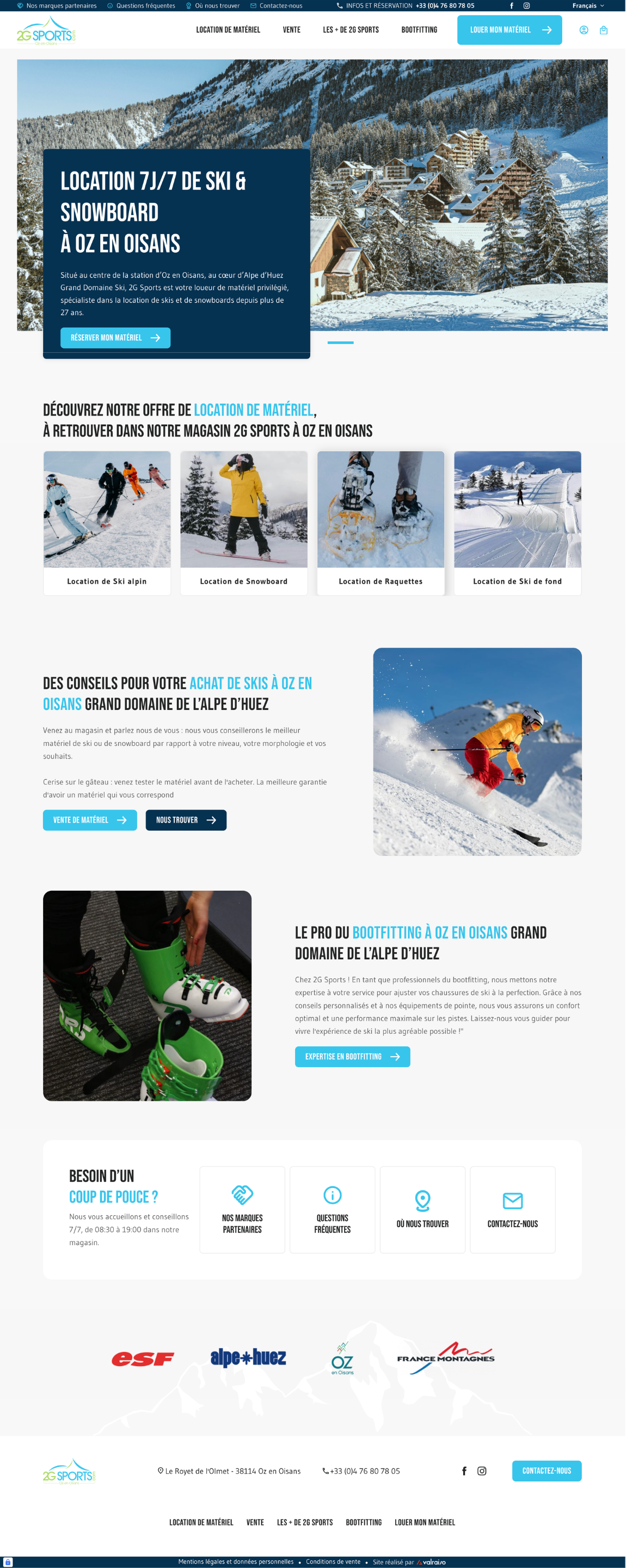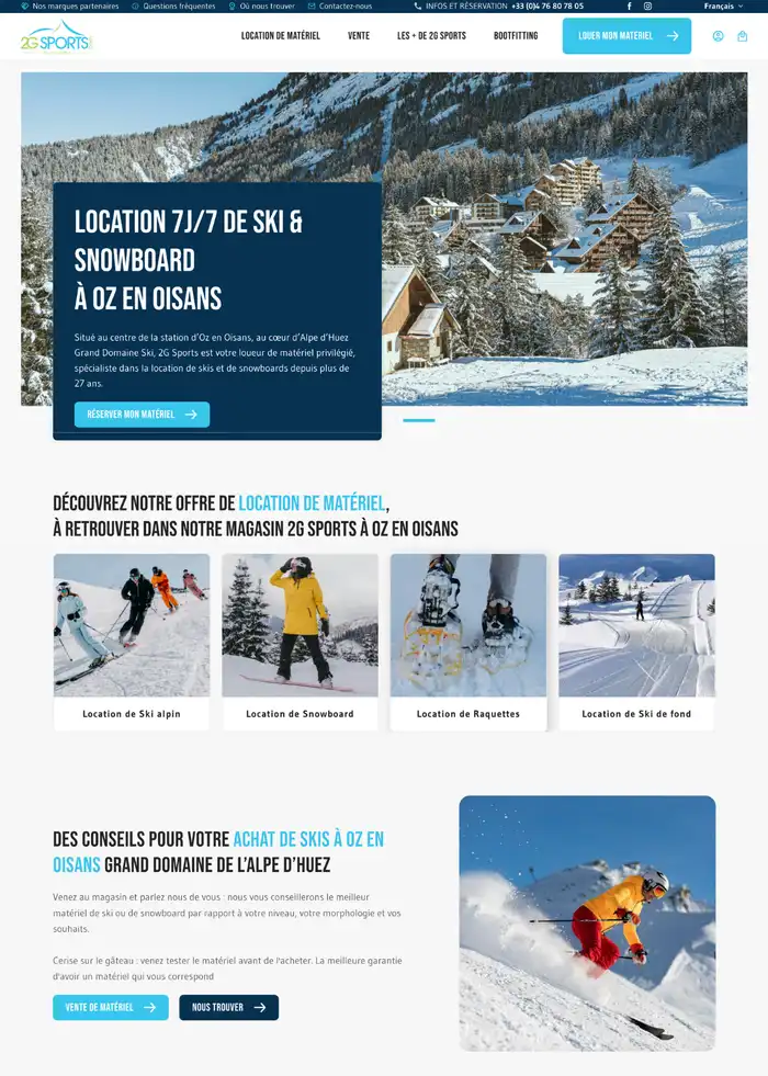 Situé au centre de la station d’Oz-en-Oisans, 2G Sports est depuis plus de 27 ans une référence pour la location et la vente de matériel de ski et de snowboard. Malgré cette notoriété et un service reconnu, le magasin disposait d’un site ancien, peu structuré et qui ne permettait pas de vendre ou réserver en ligne.