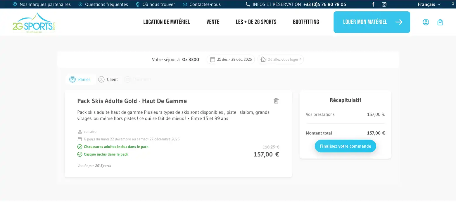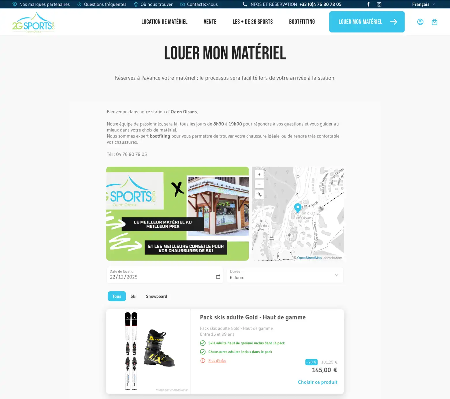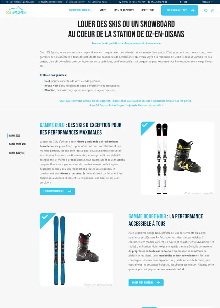 Situé au centre de la station d’Oz-en-Oisans, 2G Sports est depuis plus de 27 ans une référence pour la location et la vente de matériel de ski et de snowboard. Malgré cette notoriété et un service reconnu, le magasin disposait d’un site ancien, peu structuré et qui ne permettait pas de vendre ou réserver en ligne.