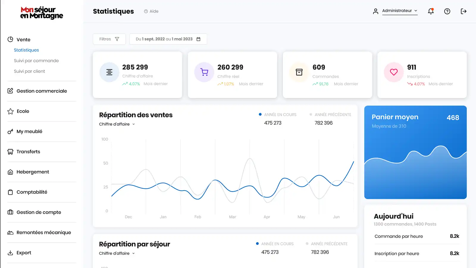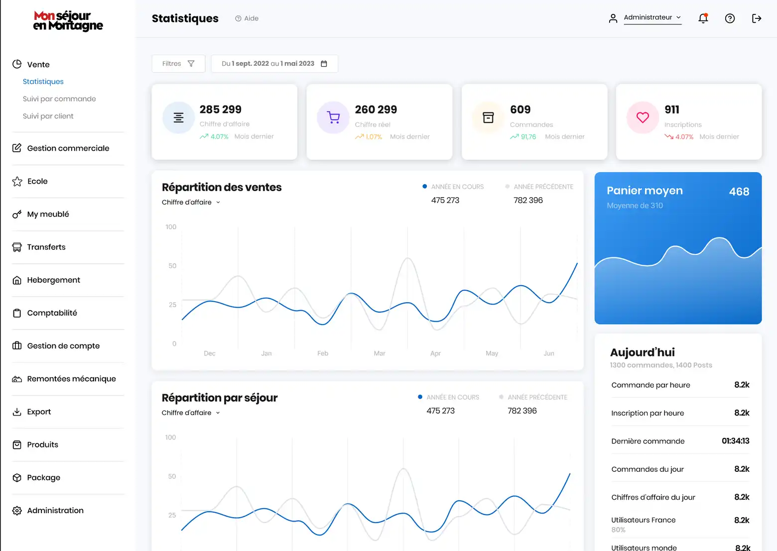 Cet outil d’administration s’adresse à plus de 1000 marchands et 5000 utilisateurs : hébergeurs, école de ski, remontées mécaniques, loueurs de matériel, dans plus de 160 stations.