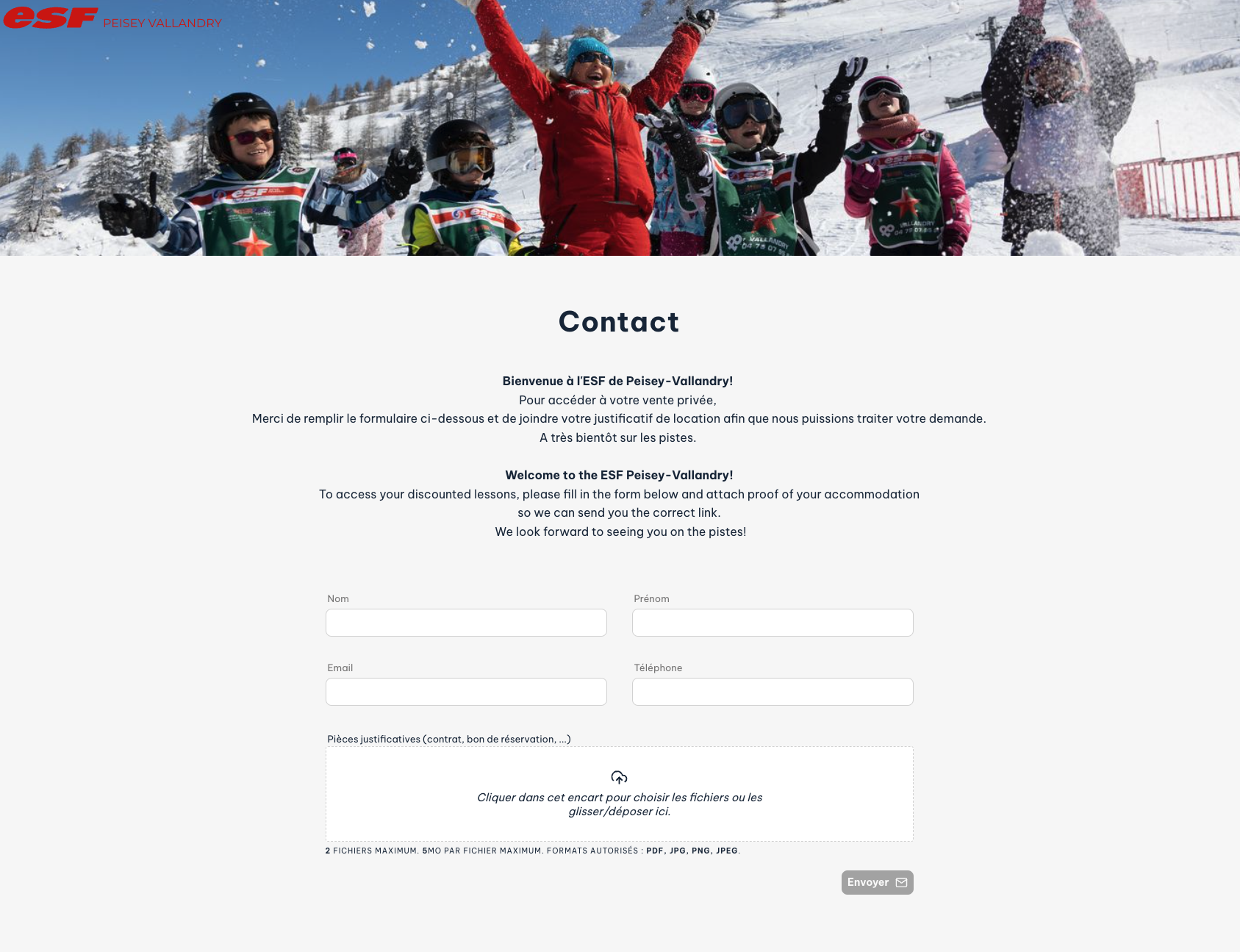 Pour faciliter le travail de l’école, un formulaire de contact (/espace-prive/contact/) est mis à disposition des partenaires, permettant à leurs clients de demander un accès en fournissant un justificatif de location. À réception du mail, le/la secrétaire vérifie la validité de la demande et génère l'e-mail de connexion pour que le client accède à l’espace privé.