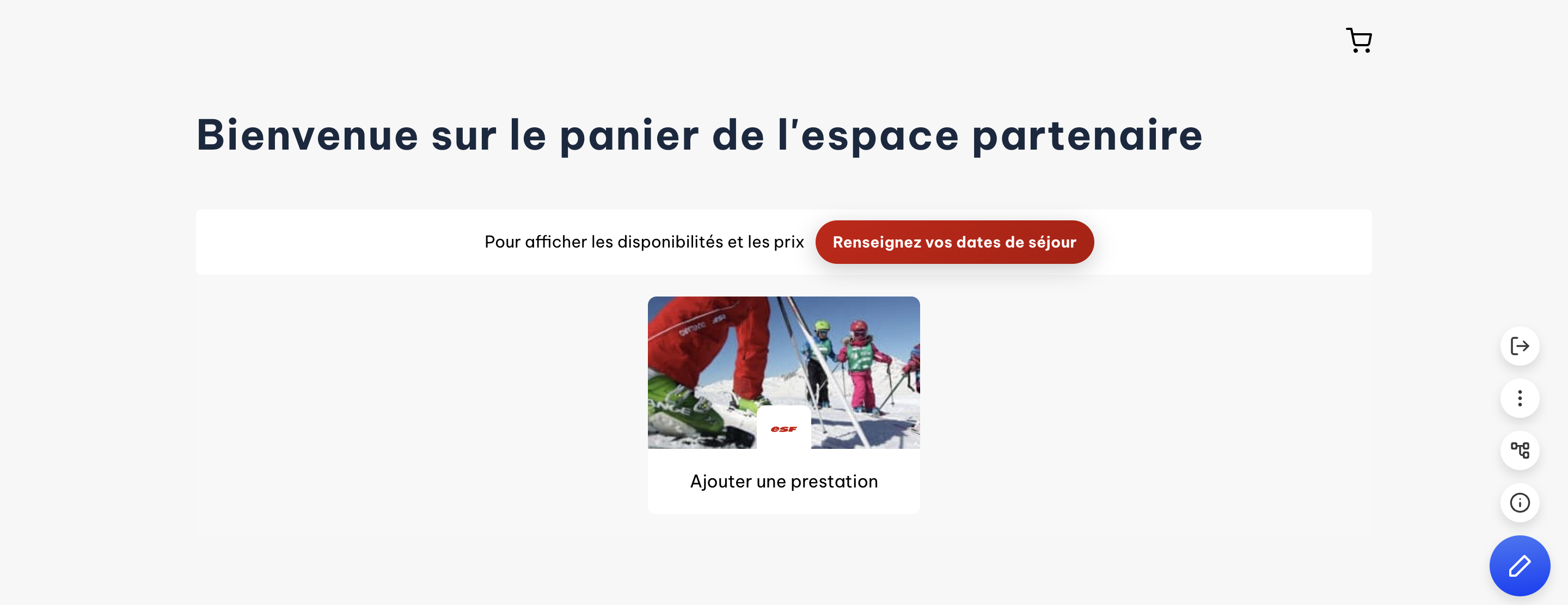 - Depuis la page Panier, vous aurez accès à la page Tunnel en cliquant sur le bouton “Ajouter une prestation”, se trouvant sous la sélection de dates du widget.