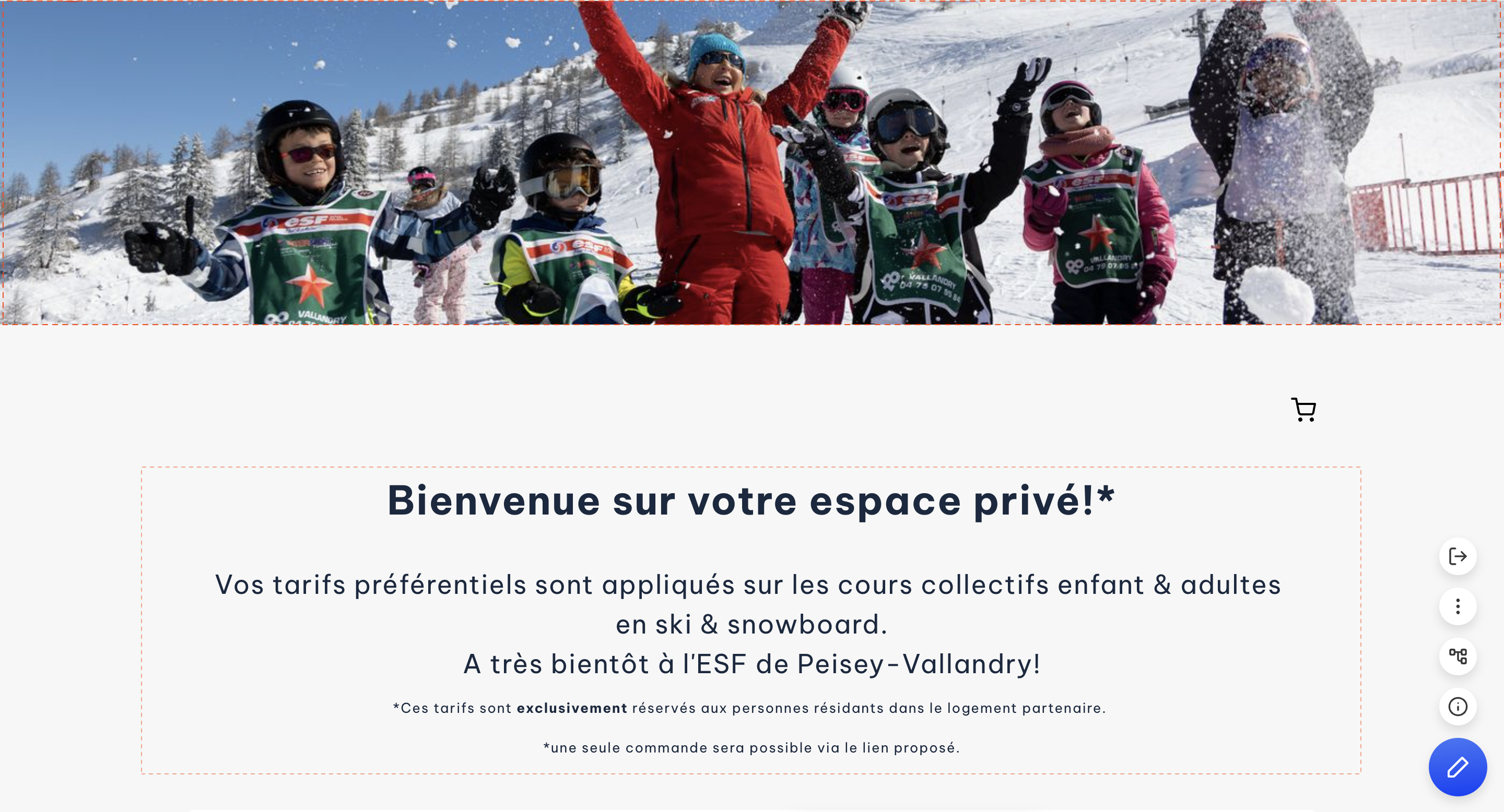- Les pages du Tunnel et du Panier dans l’espace privé partagent un contenu éditable commun : le bandeau en tête de page. Ainsi, toute modification effectuée sur l’une des pages sera automatiquement appliquée à l’autre.