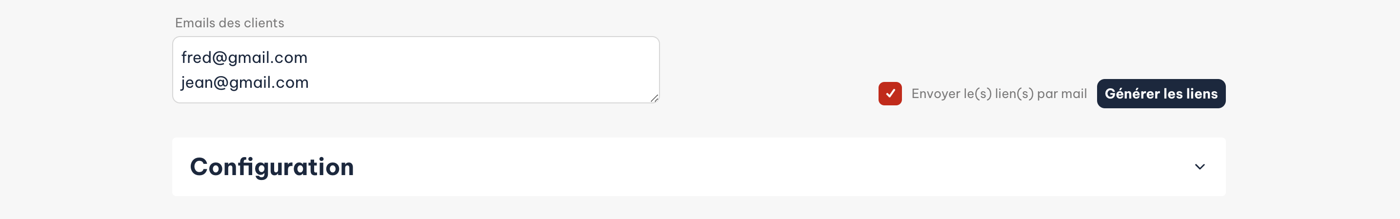 - Par défaut, l'option “Envoyer le(s) lien(s) par mail” est cochée. Décochez-la si vous souhaitez uniquement créer les liens sans les envoyer par e-mail.