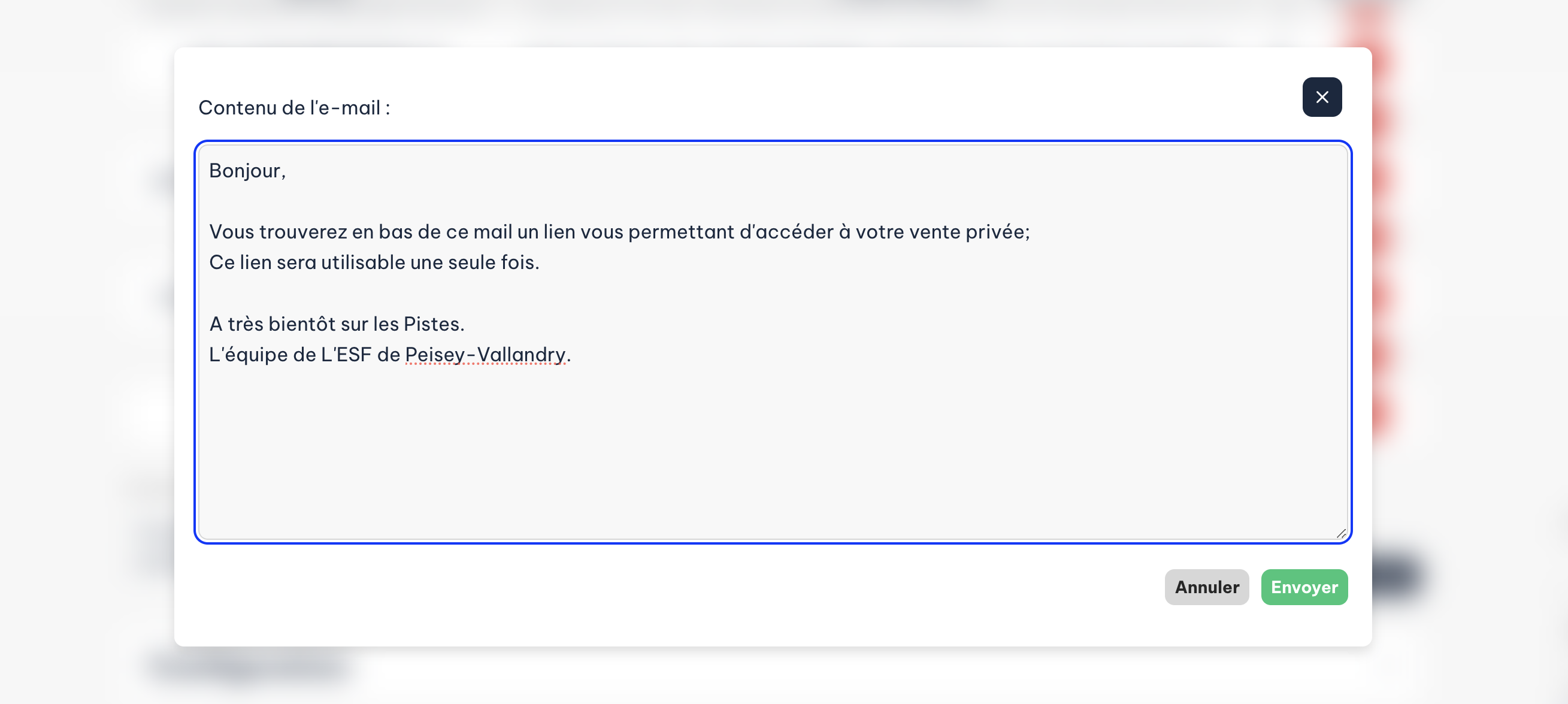 - Les e-mails seront automatiquement envoyés aux destinataires avec le lien d'accès à la vente en ligne.