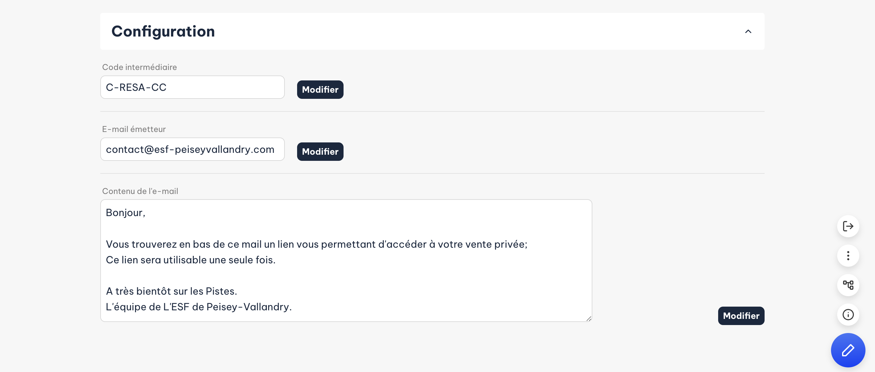 - Renseigner un e-mail émetteur, qui sera utilisé pour l’envoi des liens d’accès par e-mail aux clients et leur permettra de vous répondre.