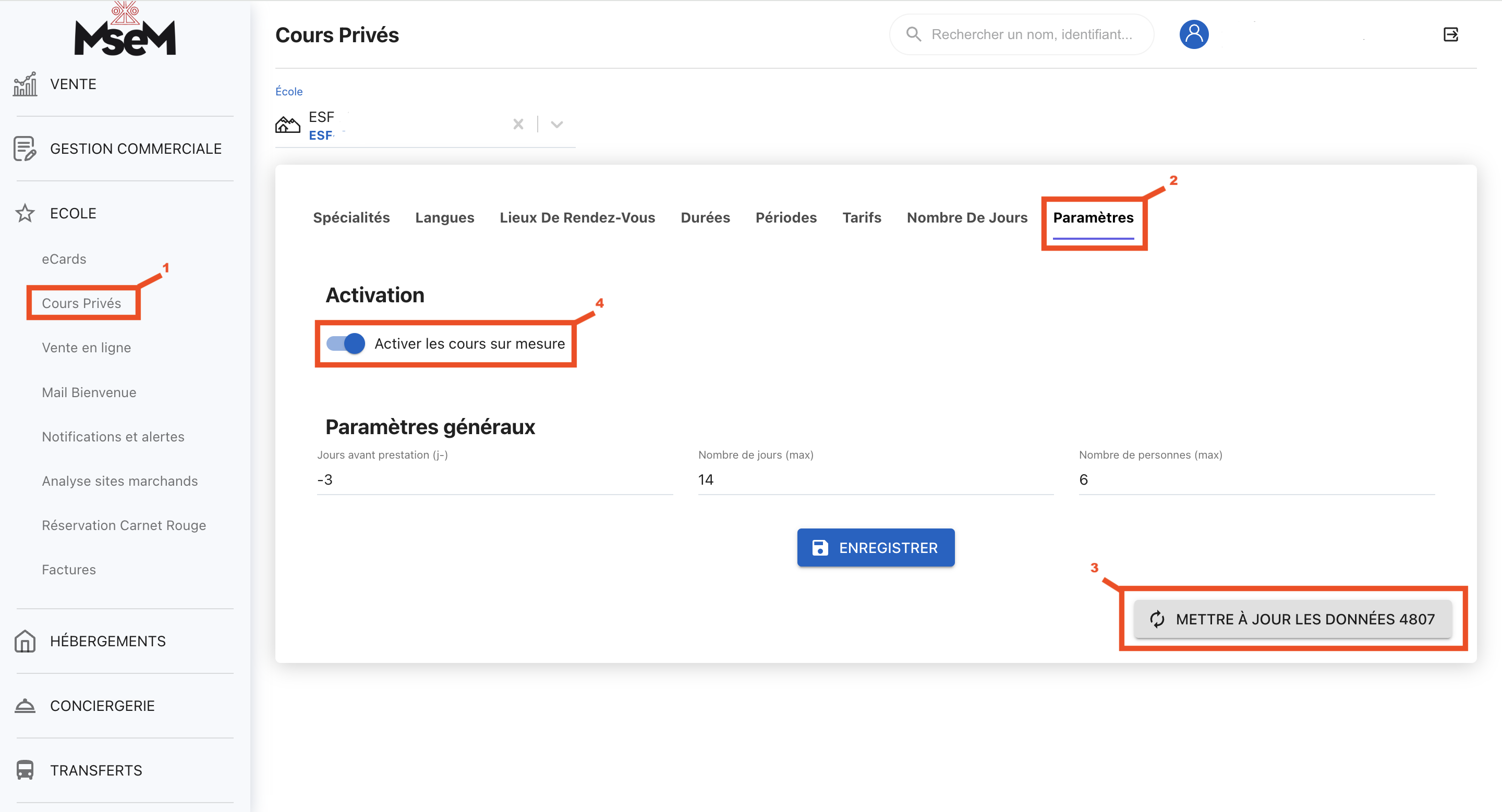 3 • Paramétrer les cours privés sur mesure sur Msem