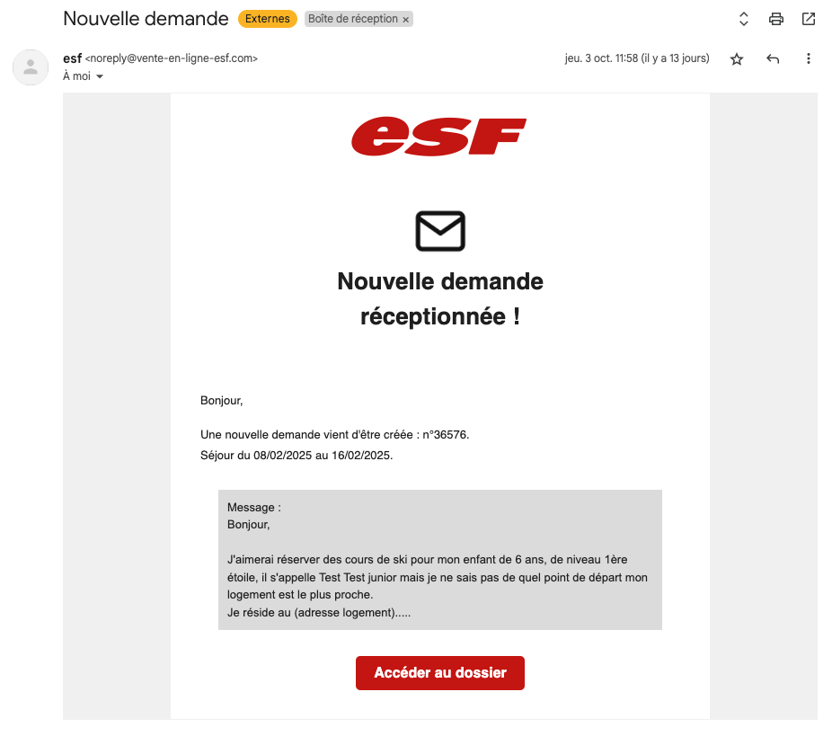 - Vous recevrez un e-mail de notification à chaque nouvelle création de dossier client.