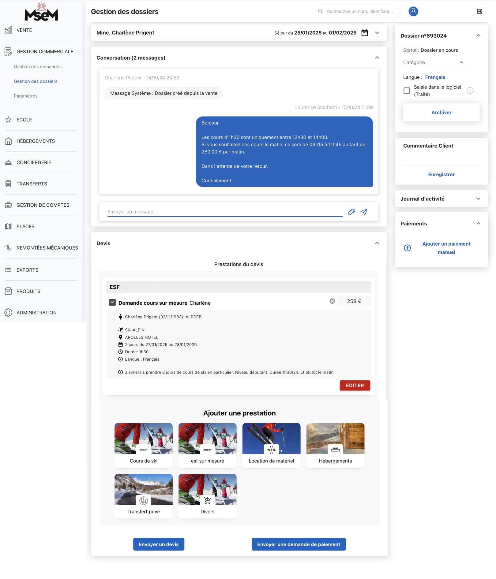 Paramétrer vos cours privés dans la gestion commerciale vous permet de simplifier le traitement des réservations, d'automatiser certains processus et d’offrir une meilleure expérience à vos clients. Ce tutoriel vous guide étape par étape pour configurer vos cours sur mesure, afin qu’ils soient correctement pris en compte sur votre site esf mais aussi dans la gestion des dossiers.