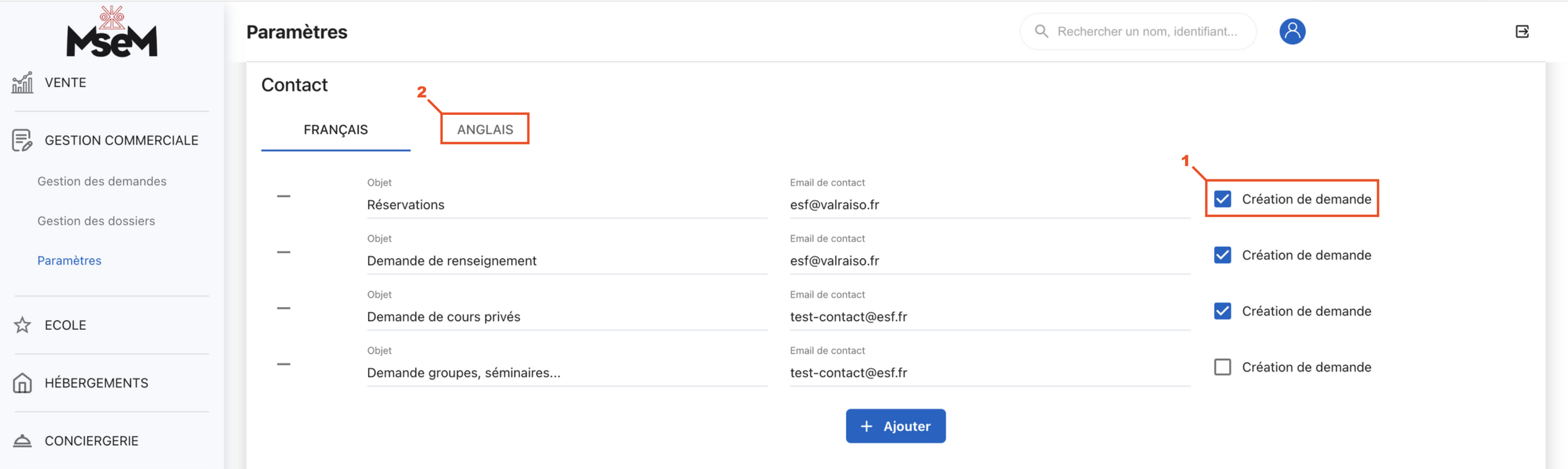 Si vous souhaitez également regrouper les demandes issues du formulaire de contact de votre site esf, suivez les instructions suivantes :