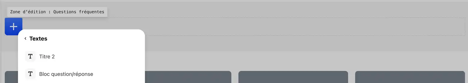 Astuce : Pour gagner du temps, vous pouvez dupliquer un bloc existant en cliquant sur le bouton bleu "⊞" situé à droite de la section. Il vous suffira ensuite de modifier la copie selon vos besoins.