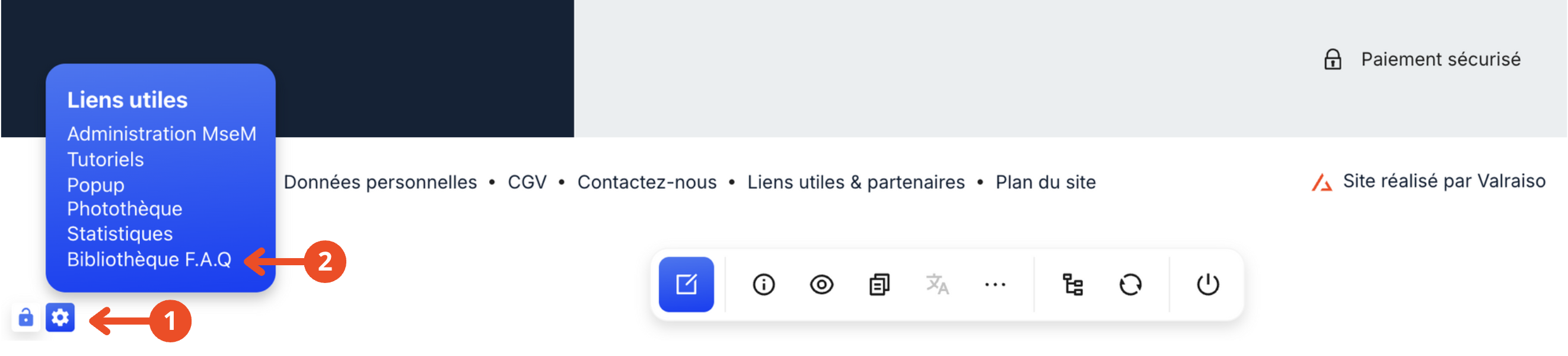 - Plusieurs liens utiles vous sont proposés, cliquez sur "Bibliothèque F.A.Q". Une page s'ouvrira alors où vous pourrez créer toutes vos questions-réponses.